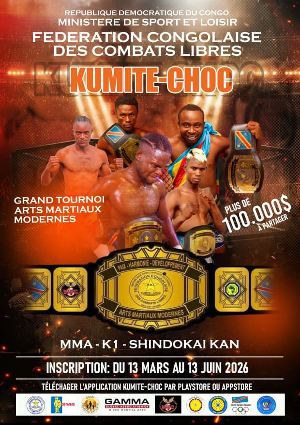La Fédération Congolaise des Combats Libres ‘’FCCL’’ que préside Me Rodrigue Masuama Ndangi s’apprête à organiser l’édition 1 du Grand Tournoi des Arts Martiaux Modernes dénommé KUMITE-choc le mois à venir. Mais avant d’y arriver là, elle a organisé un entrainement spécial suivi d’un point de presse ce dimanche 22 février 2026 au Dojo Fédéral, sise 52, Kimoa 4, Quartier 1, commune de Ndjili.