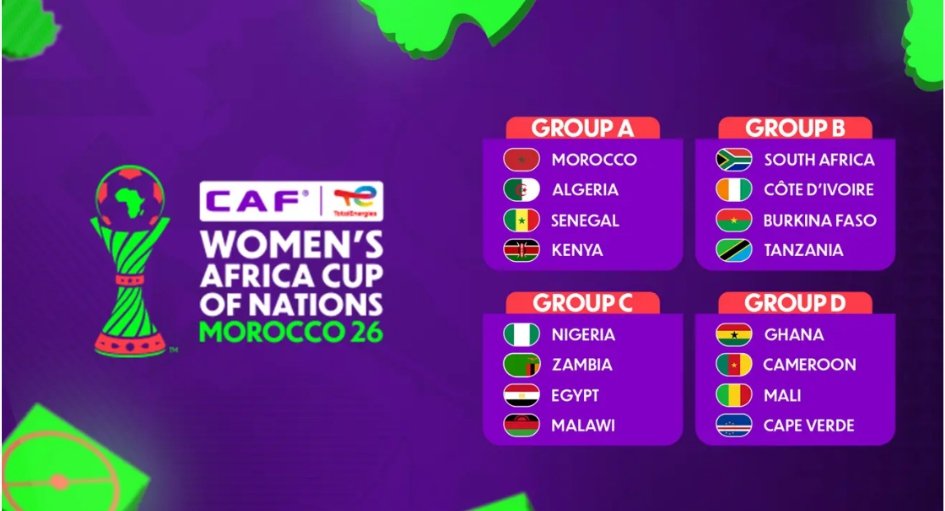 Le tirage au sort final de la TotalEnergies CAF Coupe d’Afrique des Nations Féminine Maroc 2026 a été effectué, plaçant les tenantes du titre nigérianes dans un groupe C particulièrement relevé, aux côtés de la Zambie, de l’Égypte et du Malawi, novice dans la compétition. Le tournoi se déroulera du 17 mars au 3 avril 2026.