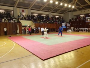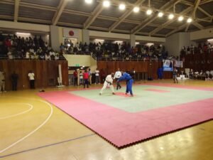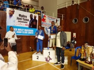 C’est à 22h29 que les deux clubs finalistes Croix-Rouge et Inawaka ont fait leur entrée dans la salle. En super forme, Inawaka démarre en trombe sa finale par la victoire de son judoka Isaac face à Losoko par ippon. Revigorés par cette victoire, les judokas d’Inawaka ont tué la finale, en alignant deux autres victoires d’affilée acquises également par ippon. Marving a battu Kiese et Kasota Gédeon alias Zibiyu face à Nzange. Le 4è combat entre Lukengeke (Croix-Rouge) et Mofimbo (Inawaka) est rude. Les deux judokas se lancent à fond et n’arrivent pas à se départager à l’issue du temps règlementaire et de 4 minutes de Golden score. Finalement les deux seront renvoyés iki wake= dos à dos. Et le dernier combat des lourds a vu Mulenga d’Inawaka dominer Kekele alias animal par ippon. Score final 4-0 en faveur d’Inawaka.
