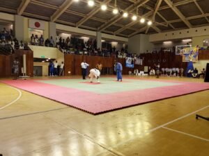 C’est à 22h29 que les deux clubs finalistes Croix-Rouge et Inawaka ont fait leur entrée dans la salle. En super forme, Inawaka démarre en trombe sa finale par la victoire de son judoka Isaac face à Losoko par ippon. Revigorés par cette victoire, les judokas d’Inawaka ont tué la finale, en alignant deux autres victoires d’affilée acquises également par ippon. Marving a battu Kiese et Kasota Gédeon alias Zibiyu face à Nzange. Le 4è combat entre Lukengeke (Croix-Rouge) et Mofimbo (Inawaka) est rude. Les deux judokas se lancent à fond et n’arrivent pas à se départager à l’issue du temps règlementaire et de 4 minutes de Golden score. Finalement les deux seront renvoyés iki wake= dos à dos. Et le dernier combat des lourds a vu Mulenga d’Inawaka dominer Kekele alias animal par ippon. Score final 4-0 en faveur d’Inawaka.
