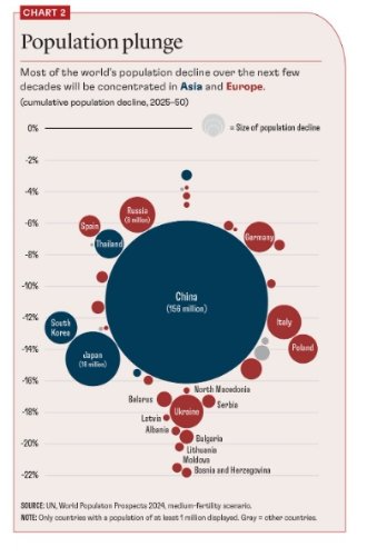 Une faible fécondité et un dépeuplement peuvent entraver le progrès économique et social. Moins de naissances et de populations plus petites signifient naturellement moins de travailleurs, d’épargnants et de dépensiers, ce qui pourrait entraîner une contraction de l’économie.