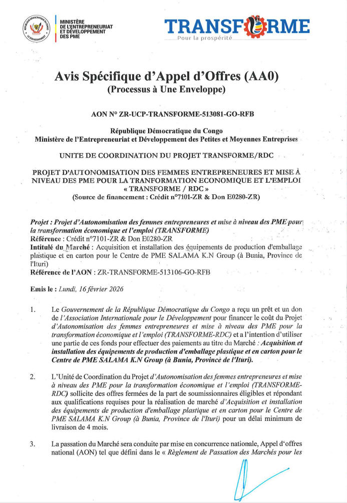 Projet d’ autonomisation des femmes entrepreneurs et mise à niveau des PME pour transformation économique et l’emploi(Transformer)