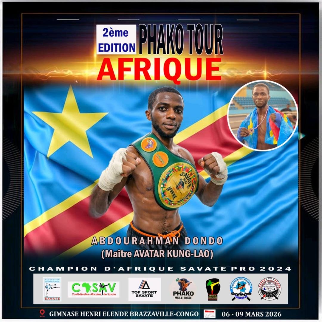 La République Démocratique du Congo y sera de la partie comme à la 1ère édition. Me Abdul Dondo sans aucun soutien de l’Etat congolais qui n’a des yeux que pour certaines disciplines sportives, avait représenté la RDC au Savate Pro dénommé Phako Tour Afrique tenu à Brazzaville, République du Congo, le dimanche 8 décembre 2024 au Gymnase Nicole Oba de Brazzaville.