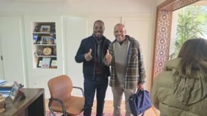 Le président de la Fevoco ne s’est pas limité là, il a eu une rencontre conviviale et riche en échanges avec Monsieur Amid Absdalaoui Mouhammed, ancien sélectionneur national des Léopards Volley-ball.